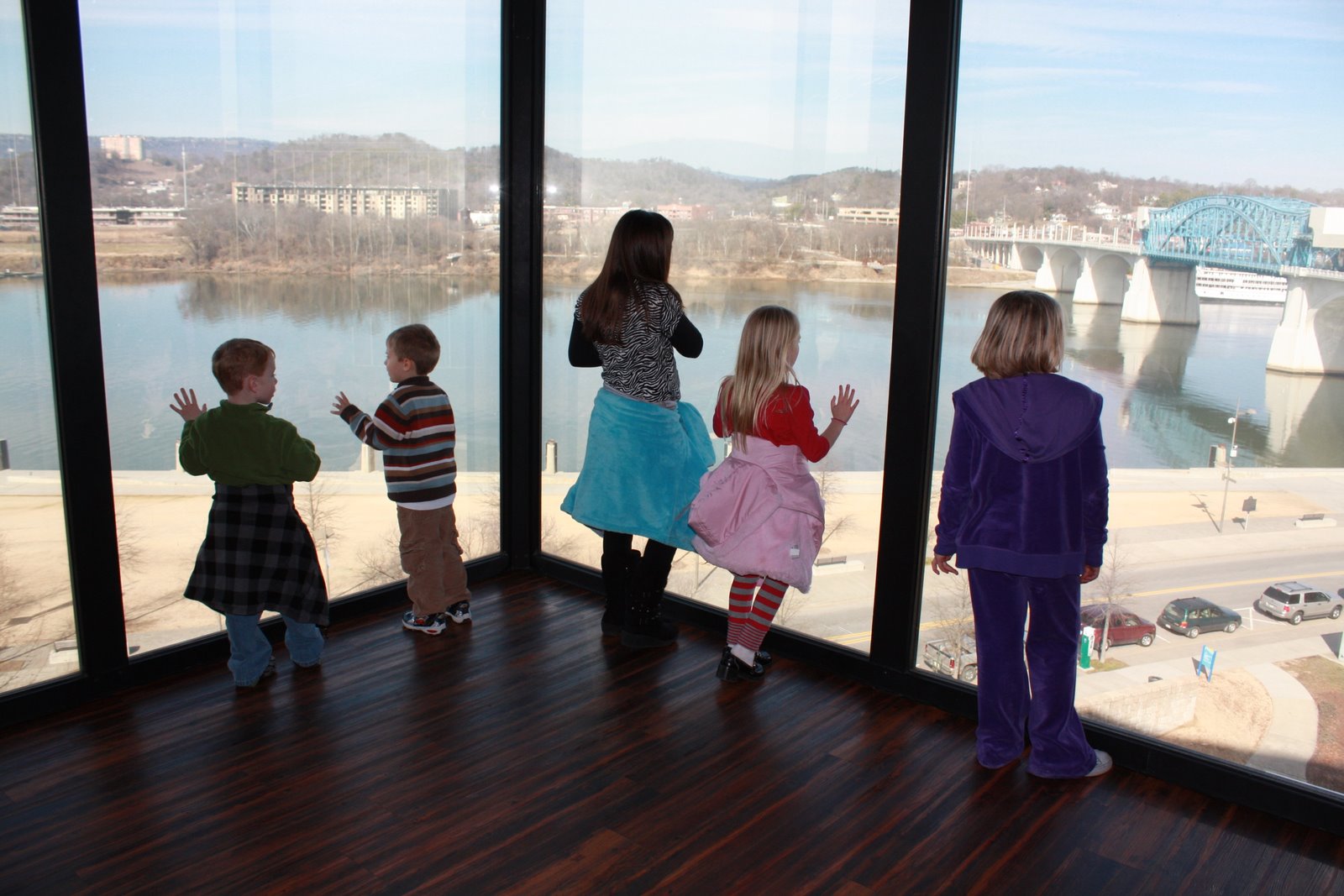 Emma wouldn't look. She was terrified of the crab coming after her. The tubes they have in the big tanks the kids can stand in are awesome. It was too funny getting all five kids in one. When that crab starting moving toward them, Emma just freaked - hilarious!!